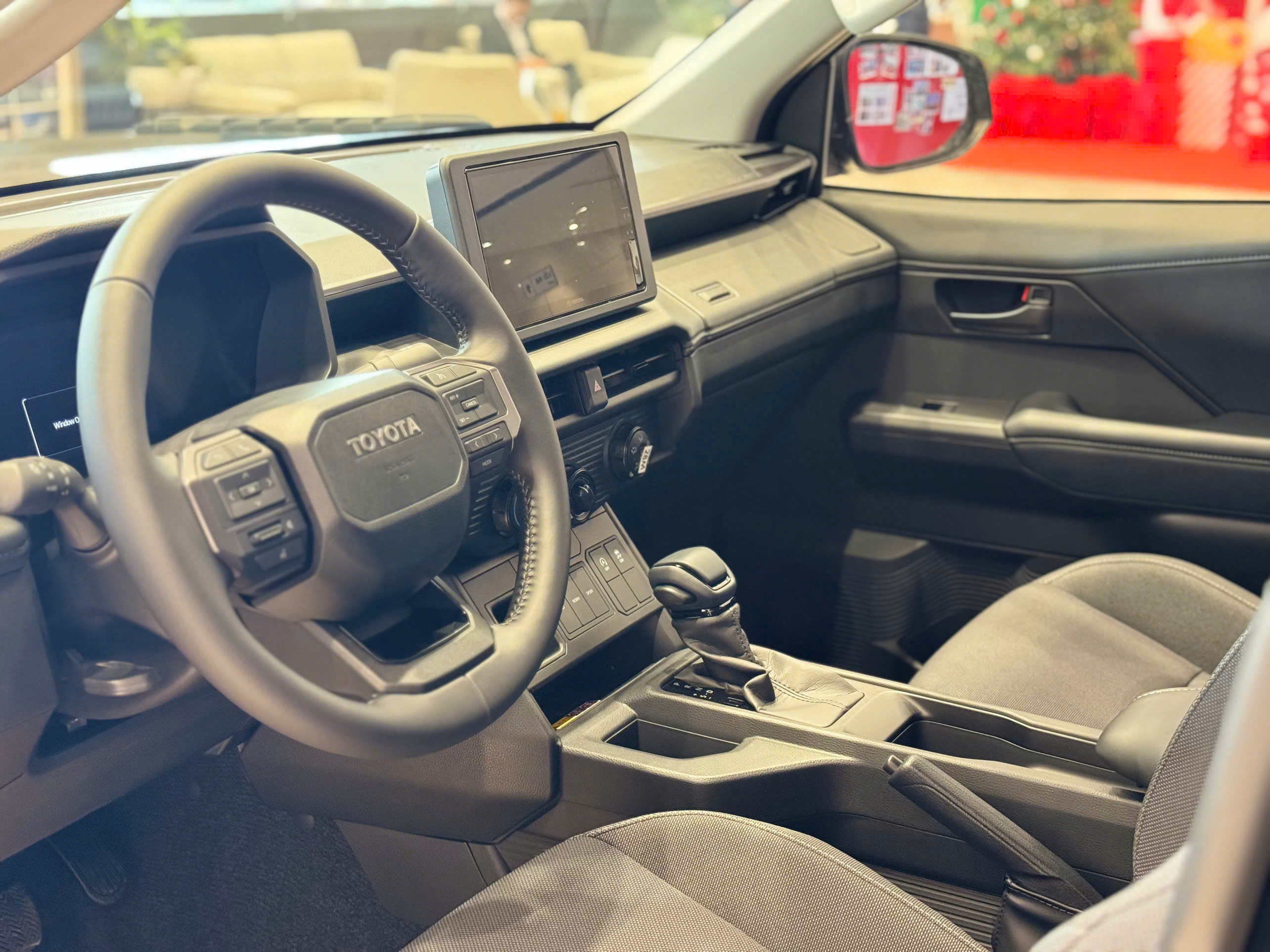 Vô lăng Toyota Hilux 2026 cũng duy trì thiết kế 3 chấu thể thao với các gù tựa tay tiện dụng. Phiên bản 4x2 AT và 4x4 MT có chất liệu vô lăng nhựa urethane cơ bản, trong khi vô lăng phiên bản 4x4 AT Adventure được bọc da cao cấp.