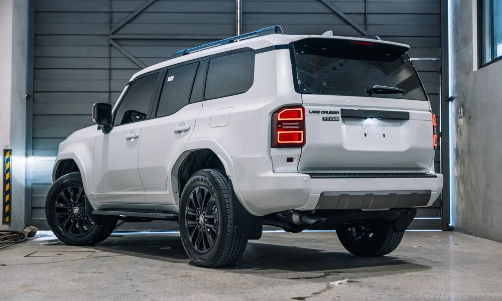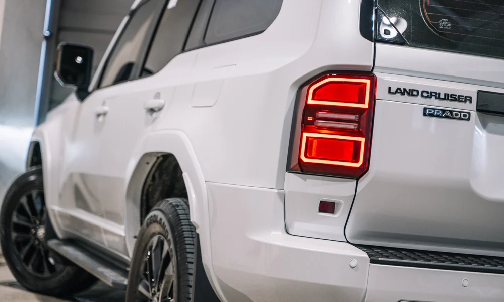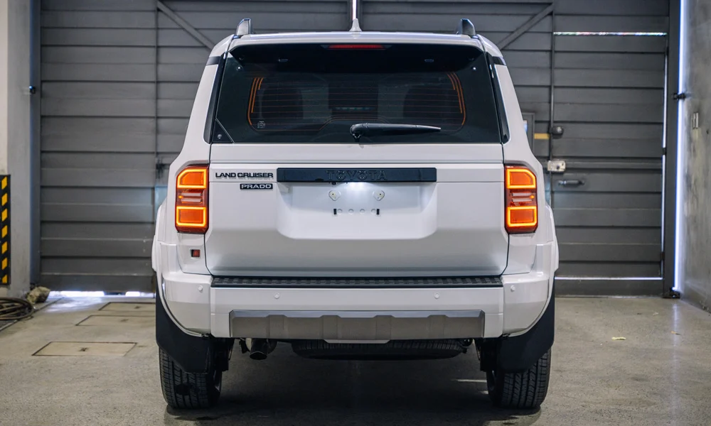 Phần đuôi xe của Toyota Land Cruiser Prado 250 được thiết kế mạnh mẽ và tinh tế, thể hiện rõ nét phong cách SUV hạng sang và khả năng off-road.
