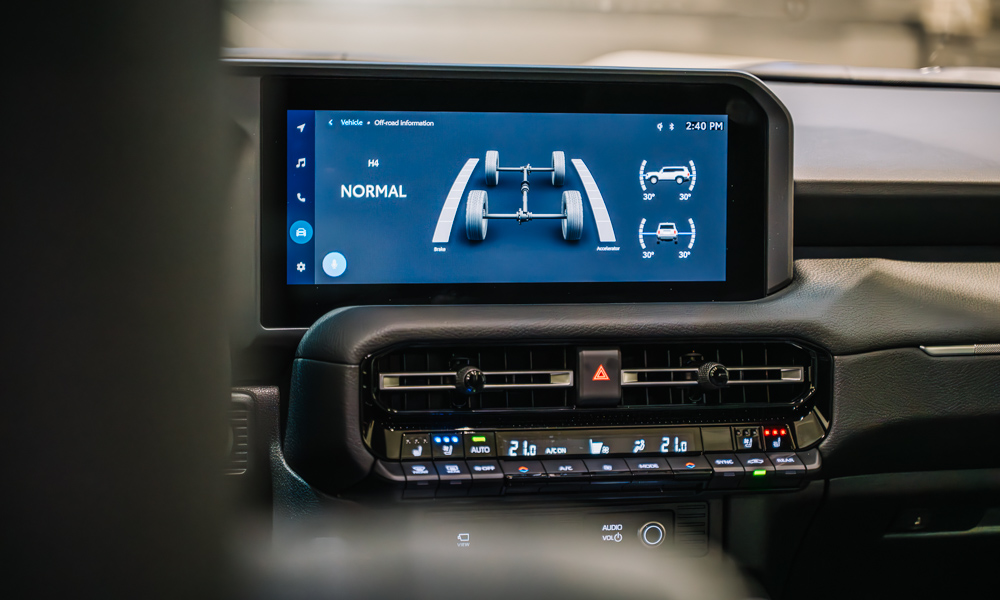 Nội thất của xe cũng được thay đổi toàn diện với những đường nét góc cạnh, phù hợp với kiểu dáng hầm hố bên ngoài. Vô lăng hiện đại với 3 chấu, bọc da và tính năng chỉnh điện 4 hướng, sưởi vô lăng. Các nút bấm tích hợp điều chỉnh âm thanh, điều khiển màn hình trung tâm, tính năng TSS giúp khách hàng dễ dàng thao tác, lái xe thuận tiện hơn.